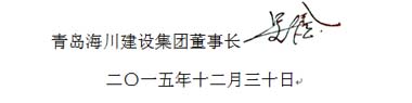 在2016年即將到來之際,我謹(jǐn)代表青島海川建設(shè)集團,向所有關(guān)心和支持我們企業(yè)發(fā)展的各級領(lǐng)導(dǎo)、各界朋友致以誠摯的新年祝賀!同時向一年來努力工作、忘我奉獻的全體股東和廣大員工致以新年祝福!向奮戰(zhàn)在海外和埠外項目上的全體員工及其家屬致以親切的問候和衷心地感謝!