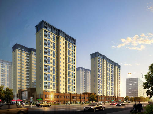 星光上院工程位于青島市城陽區(qū)和陽路與泰城路交接處,由青島明輝置業(yè)有限公司開發(fā)、中煤科工集團(tuán)重慶設(shè)計研究院有限公司設(shè)計、青島光華工程監(jiān)理有限公司監(jiān)理、青島海川建設(shè)集團(tuán)有限公司承建,工程總面積46179.7㎡,其中7#8#樓面積20505.28㎡,分為兩層商業(yè)網(wǎng)點(diǎn)和十六層住宅,總戶數(shù)192戶,商業(yè)網(wǎng)點(diǎn)32間,入住率達(dá)到100%。工程基礎(chǔ)形式為筏板基礎(chǔ),結(jié)構(gòu)形式為框架剪力墻結(jié)構(gòu),抗震設(shè)防烈度6度,抗震等級4級,防水等級二級。建筑總長度142m、寬度15m、高度53m。工程于2011年11月15日開工,2014年1月10日竣工。