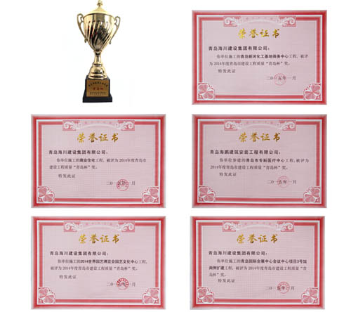 海川集團(tuán)所獲5項(xiàng)“青島杯”分別是:青島新河化工基地商務(wù)中心工程(一分公司施工);山東路商業(yè)住宅工程(一分公司施工);青島市??漆t(yī)療中心工程(三分公司施工);2014世界園藝博覽會(huì)愿意文化中心工程(四分公司施工);青島國際會(huì)展中心會(huì)議中心項(xiàng)目3號(hào)館南側(cè)擴(kuò)建工程(六分公司施工)。