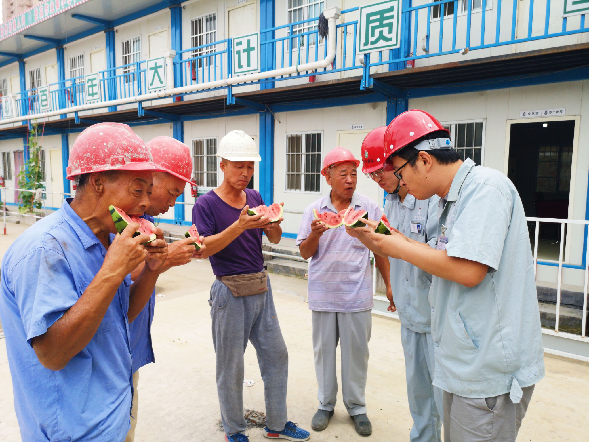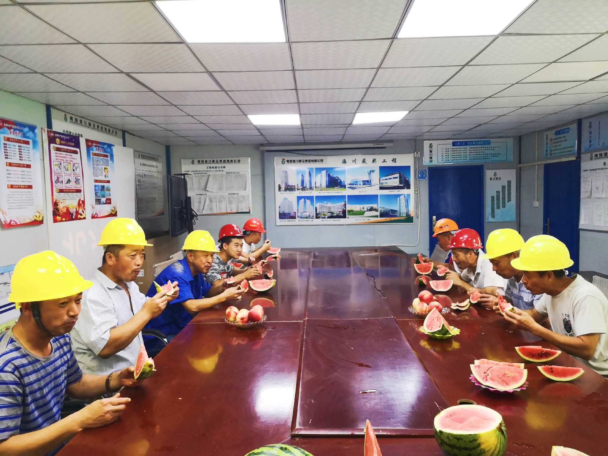 7月9日集團(tuán)工會走進(jìn)長沙路人才公寓項目部、北澗社區(qū)安置區(qū)項目部、富爾瑪項目部、鎮(zhèn)江路12號片區(qū)項目部,為一線工人送去海川農(nóng)林生態(tài)園的西瓜、桃子等等解暑降溫慰問品。