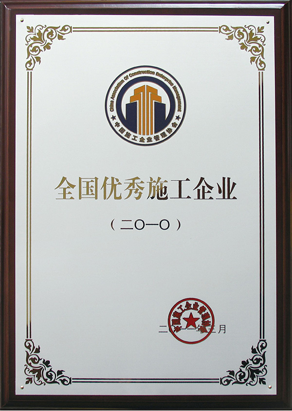 全國(guó)優(yōu)秀施工企業(yè)獎(jiǎng)牌2010